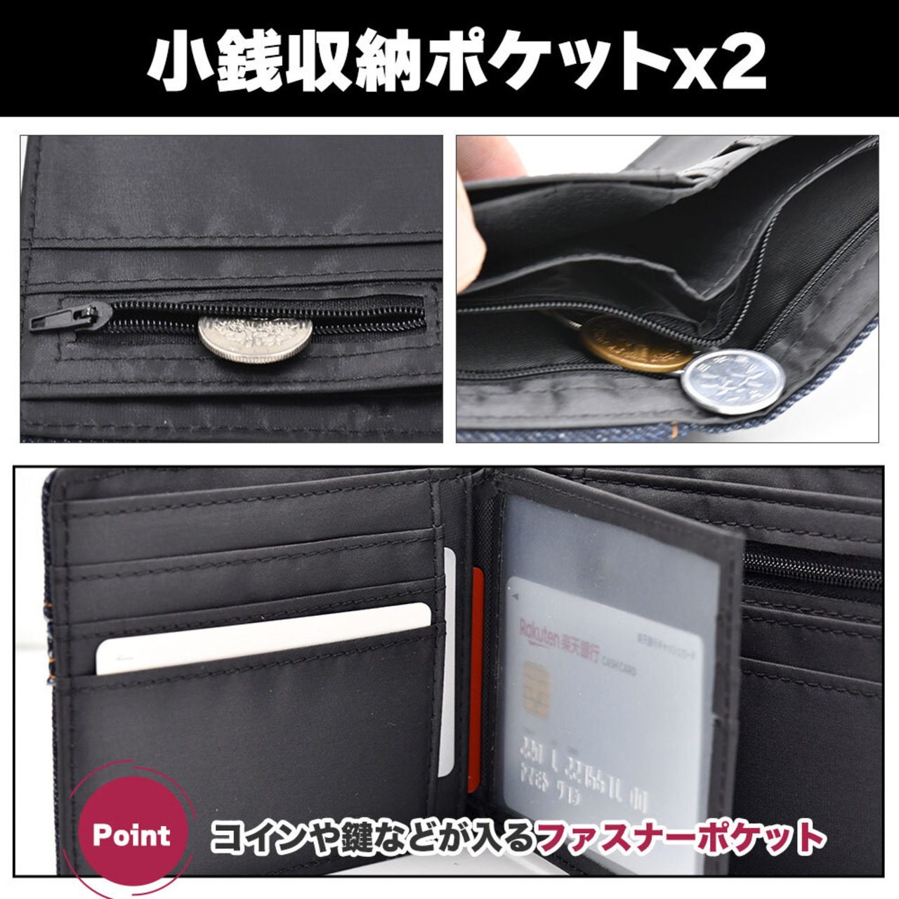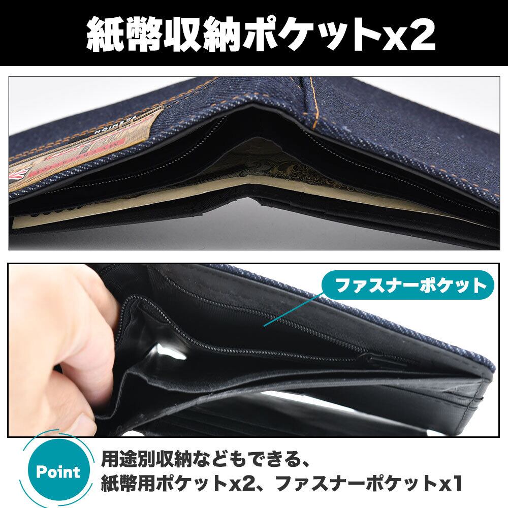 デニム 二つ折り 財布 ネイビー ジーンズデザイン ミニウォレット インディゴ染め マグネットなし ICカード収納可 男女 軽い ミニマル メンズ レディース さいふ