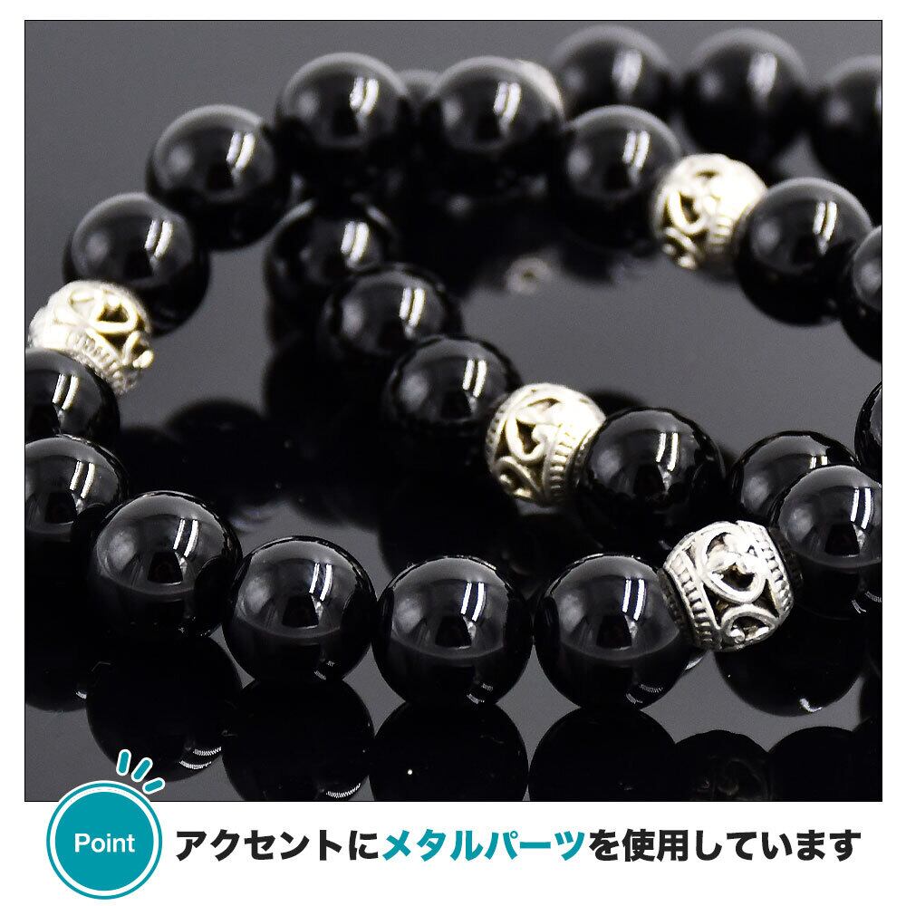 ブラック オニキス 10mm ブレスレット シルバー 15cm 16cm 17cm 18cm 19cm 20cm 21cm 天然石 黒 腕輪 魔除け パワーストーン メタル おしゃれ アクセサリー レディース メンズ ユニセックス