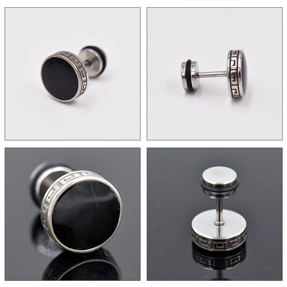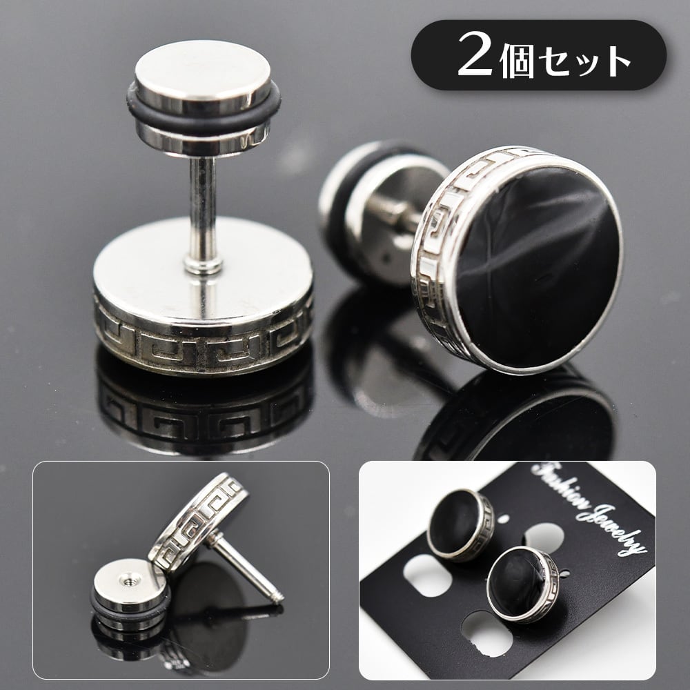 ロック式 スタッドピアス 2個セット シルバー ブラック シンプル ネジ バーベル形状 おしゃれ 両耳セット ダンベル型 銀 黒 2個1組 ロック ギフト 男女 レディース メンズ