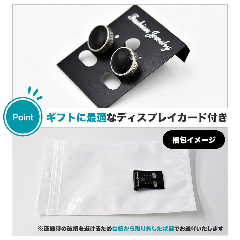 オシャレなシルバーxブラックカラーのスタッドピアス。
