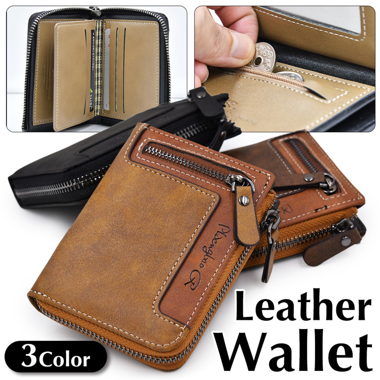 ポケットに入れて持ち運びやすい、コンパクトなレザー製の財布です。