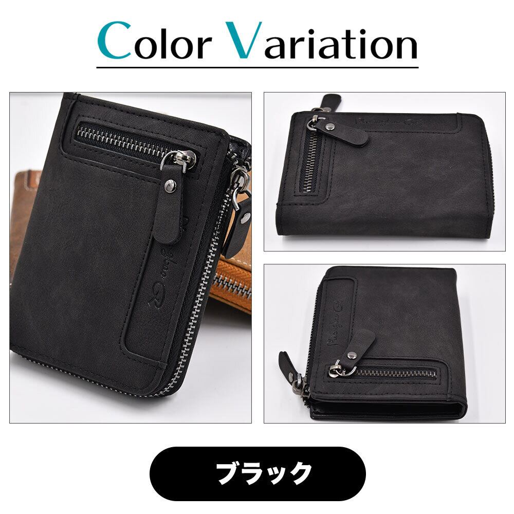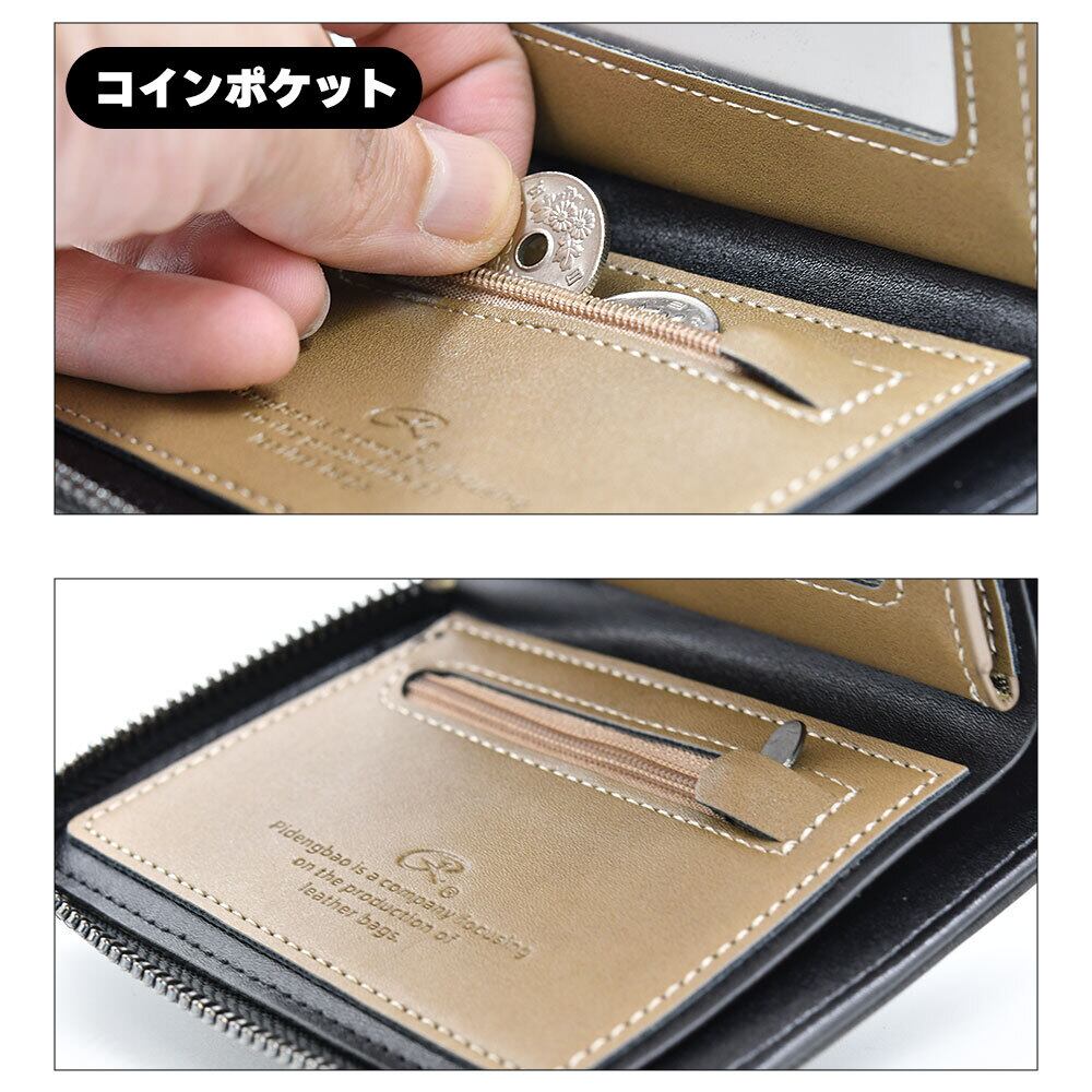 二つ折り レザー製 財布 ブラック ブラウン コンパクト ミニウォレット 革 黒 茶 マグネットなし ICカード収納可 男女 軽い ミニマル メンズ レディース さいふ