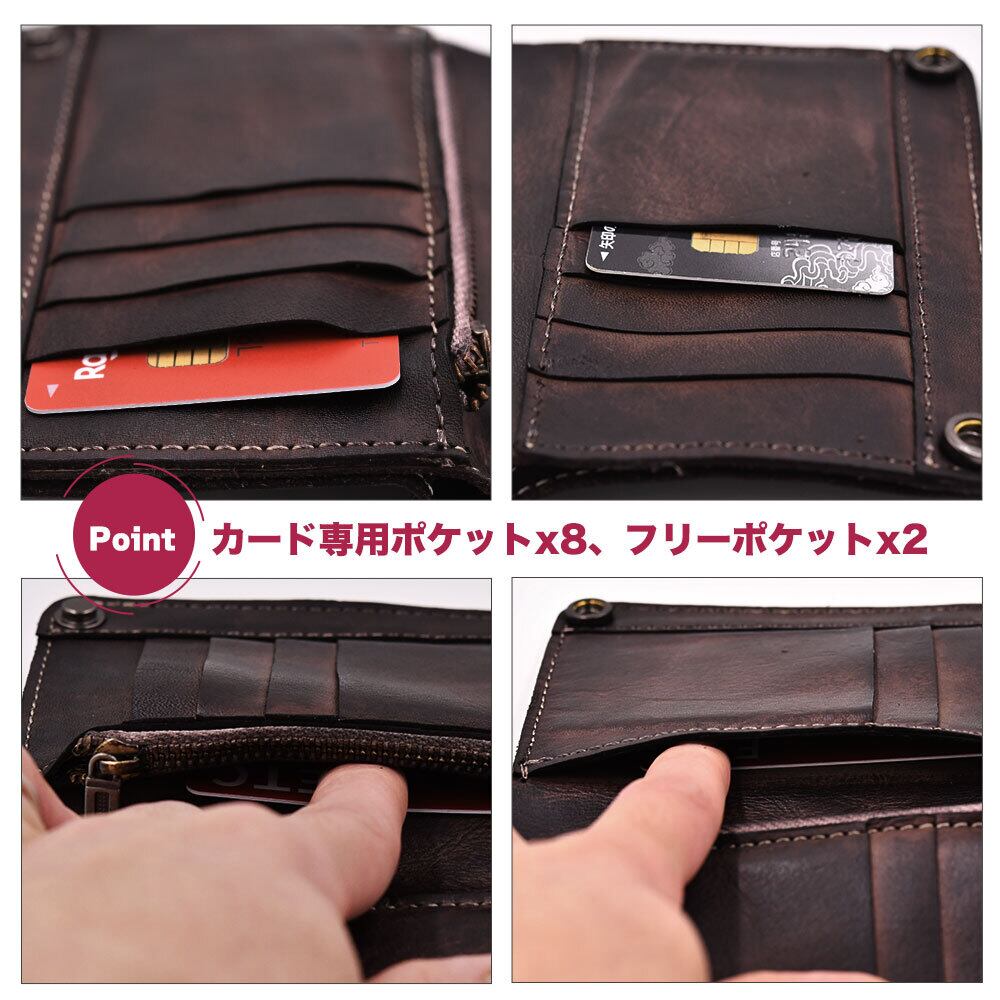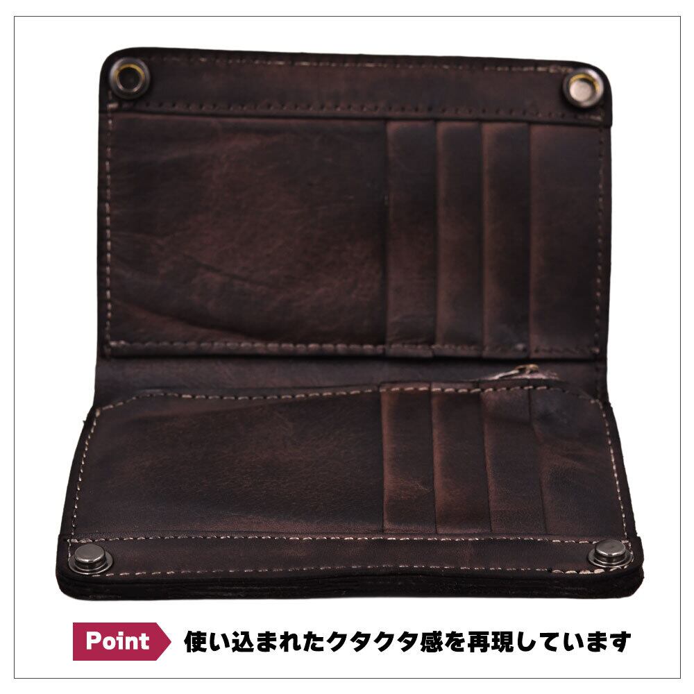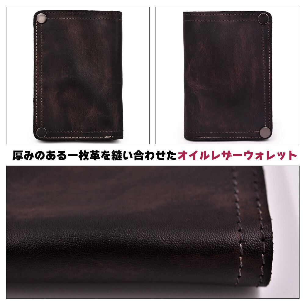 オイルレザー ウォレット 一枚革 二つ折り 財布 ダークブラウン ビンテージ感 革 焦茶 マグネットなし ICカード収納可 男女 本革 メンズ レディース さいふ