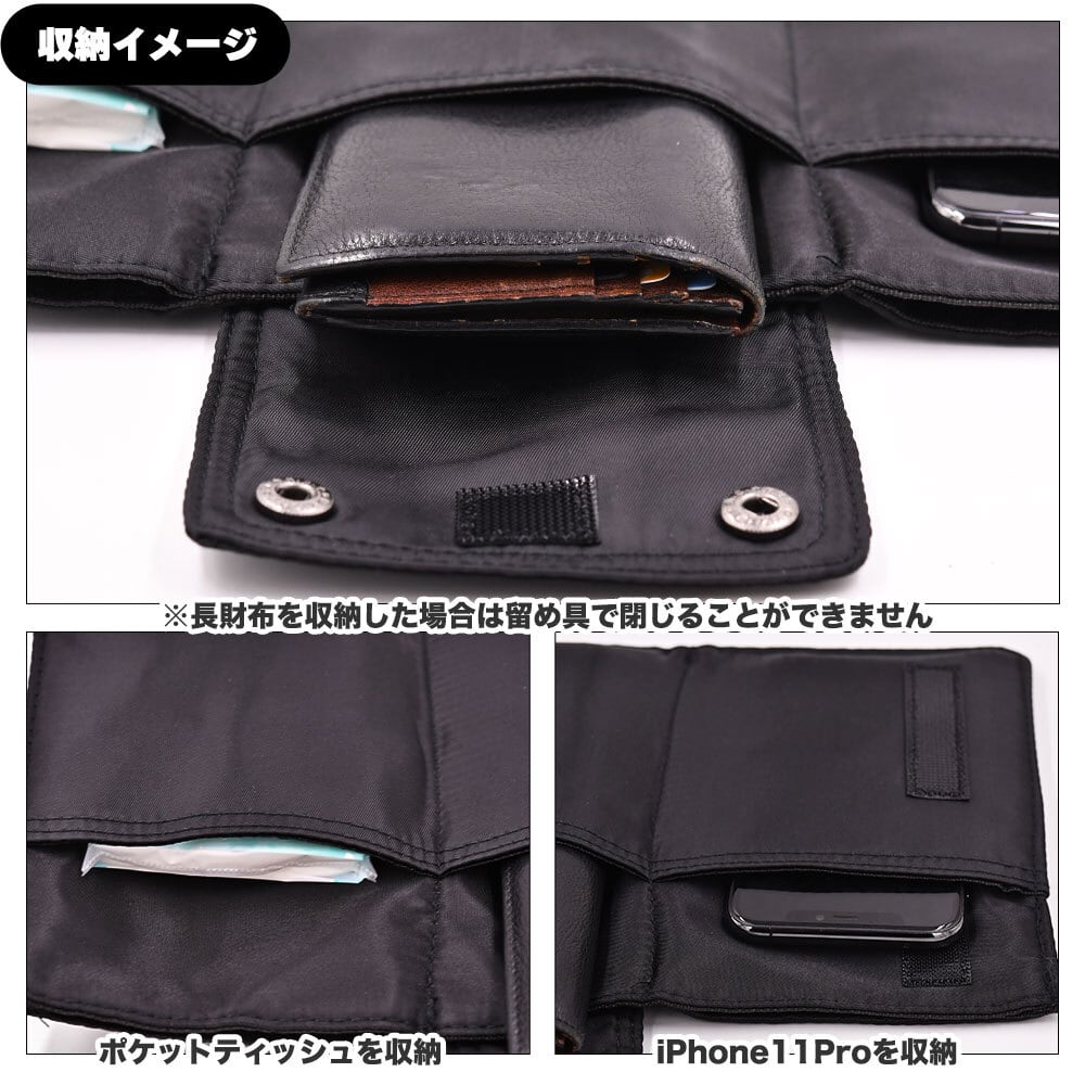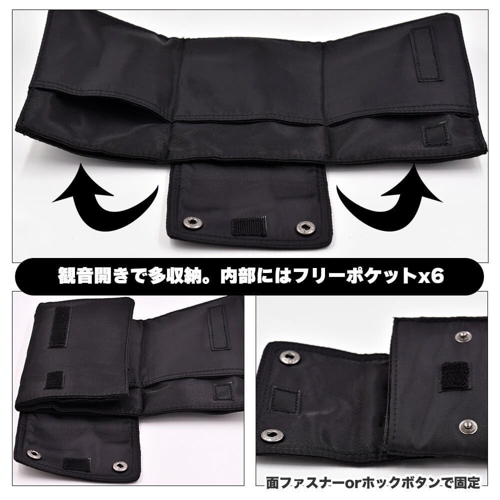 観音開きで多収納。内部にはフリーポケットx6