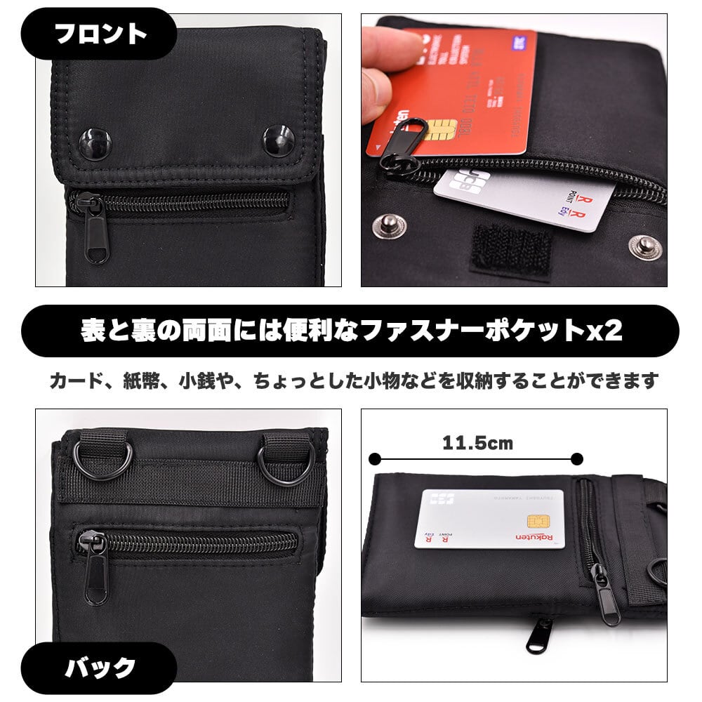 表と裏の両面には便利なファスナーポケットx2