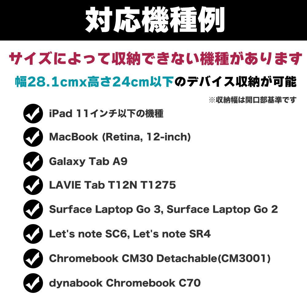 画像にてサイズをご確認のうえ一部の12インチノートパソコンも収納できます。